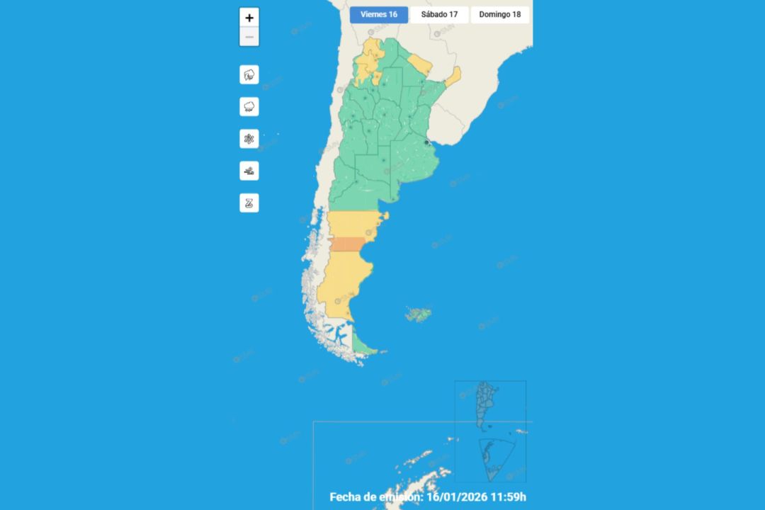 El temporal afecta también a otros territorios de la Patagonia. Mirá el detalle de la alerta emitida por el Servicio Meteorológico Nacional para este 16 de enero.