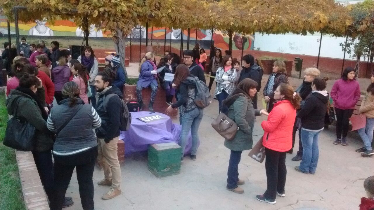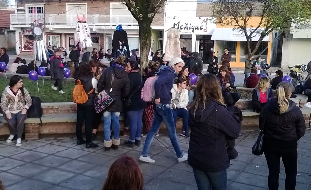Junín de los Andes: La colectiva de mujeres La Mala Junta, la red Libres de Violencias y centros de estudiantes convocaron a una radio abierta en la plaza San Martín.