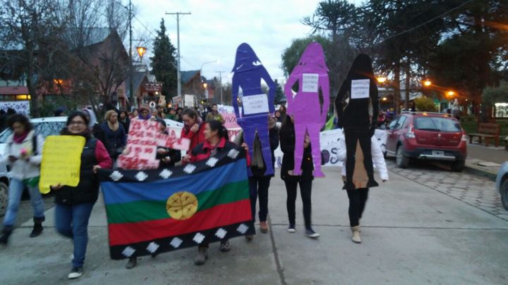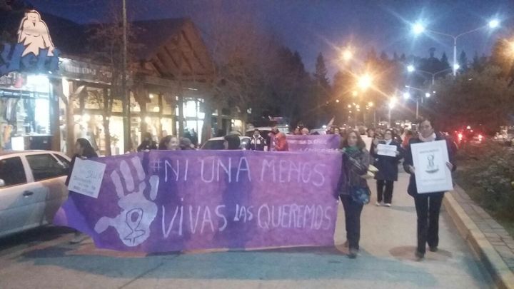 Villa La Angostura: La Red de Mujeres de Villa La Angostura marchó desde las 18:30 por la avenida principal. El punto de encuentro fue la oficina de turismo.
