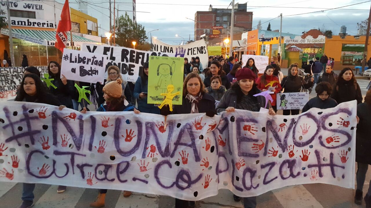 Un centenar de vecinos –en su mayoría mujeres – marcharon ayer en Cutral Co. El punto de encuentro fue la céntrica esquina de avenida Carlos H. Rodríguez y Roca. Desde allí partieron minutos después de las 18 rumbo a la plaza San Martín. Al pasar frente a la municipalidad hubo reclamos por la obra del refugio para las mujeres que ya fue comprometido y no hubo avance al respecto.