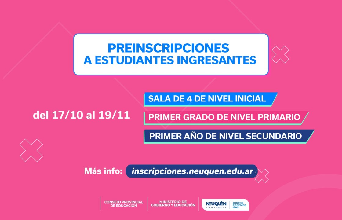 Hoy comienzan las preinscripciones para estudiantes ingresantes en Neuquén. La modalidad será a través del portal online de inscripciones y está destinado a alumnos que ingresen al nivel inicial, primario y secundario. Lee en detalle cómo realizarlo.