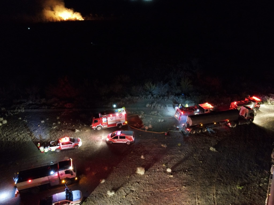 Por tercer día Bomberos Voluntarios combaten las llamas en un campo de Tratayen, a 20 kilómetros de Añelo en el corazón de Vaca Muerta. El incendio comenzó el martes y no da tregua.