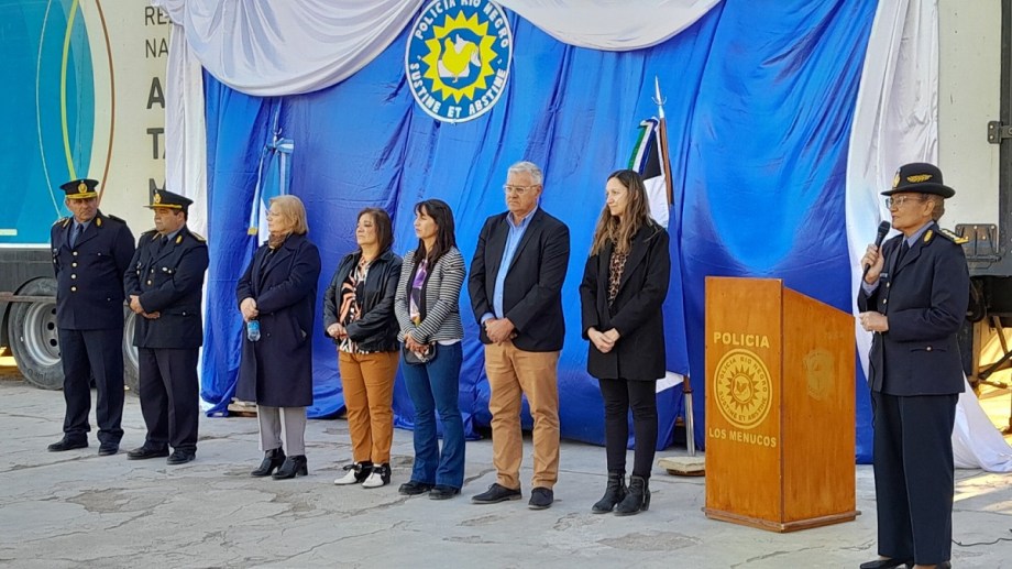 Los actos de apertura fueron encabezados por la jefa de la fuerza provincial, Comisario General Mary Carmen Carrizo; el subjefe, Comisario General Daniel Bertazzo; el director general de Capacitación y Perfeccionamiento, Miguel Ángel Mossano; y autoridades municipales de la Región Sur.