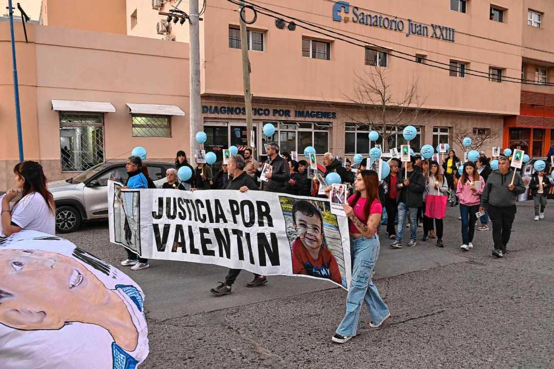 Desde la mencionada esquina céntrica, la columna compuesta por familiares, amigos y vecinos avanzó hasta la calle Chacabuco por Tucumán y luego siguió por 9 de Julio, para pasar enfrente del sanatorio Juan XXIII, lugar en el que murió Valentín durante una operación programada.
