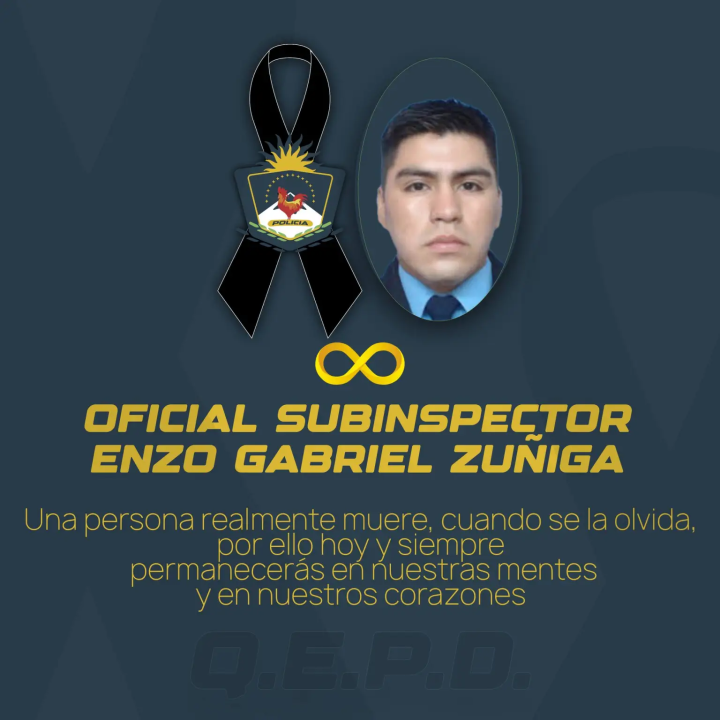 Asimismo, desde el Ministerio de Seguridad de Neuquén emitieron y comunicado lamentando el suceso: «El ministro participa con profundo dolor el fallecimiento del Oficial subinspector, Enzo Gabriel Zuñiga (Q.E.P.D.), y acompaña a su familia, esposa e hija en este difícil momento».