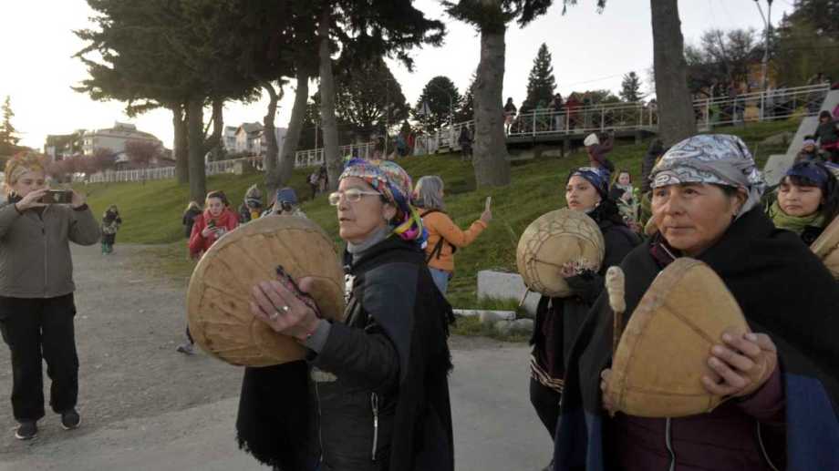 A las siete de este sábado, unas 30 mujeres mapuches encabezaron una rogativa para dar la bienvenida. Fue en la costa del lago Nahuel Huapi, debajo del Centro Cívico y la participación fue masiva.