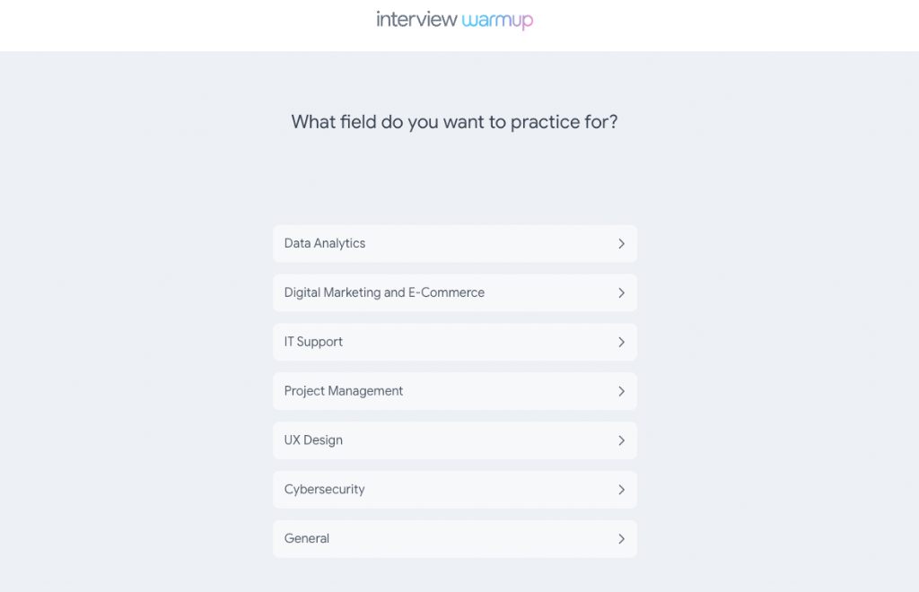 La plataforma cuenta con entrevistas específicas para los puestos de analista de datos, marketing digital y e-comerce, tecnología de la información, diseño UX, ciberseguridad, y también cuenta con una entrevista general. Por el momento, solo está disponible en inglés.