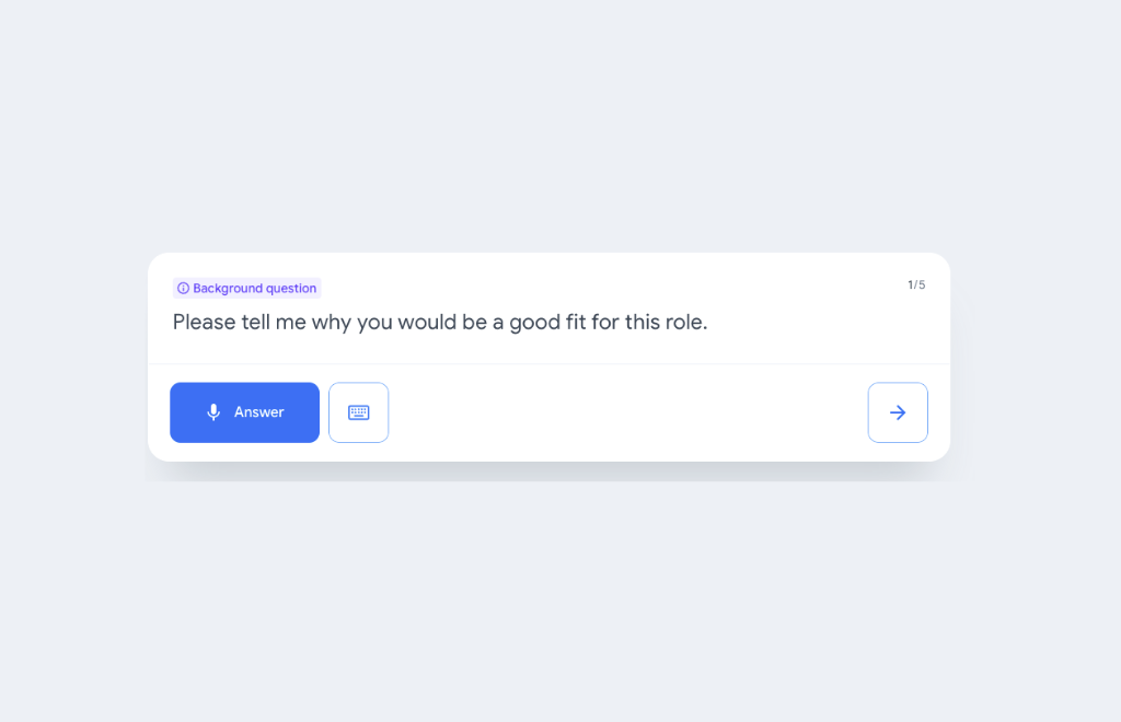 Después de seleccionar el rubro y habilitar el acceso al micrófono, la IA nos hace cinco preguntas que es probable que aparezcan en nuestra entrevista laboral. Tenemos disponible todo el tiempo que queramos para responderla, dar por finalizada nuestra intervención y pasar a la siguiente pregunta. Sus temas varían entre preguntas generales, preguntas sobre situaciones específicas y sobre aspectos técnicos.
