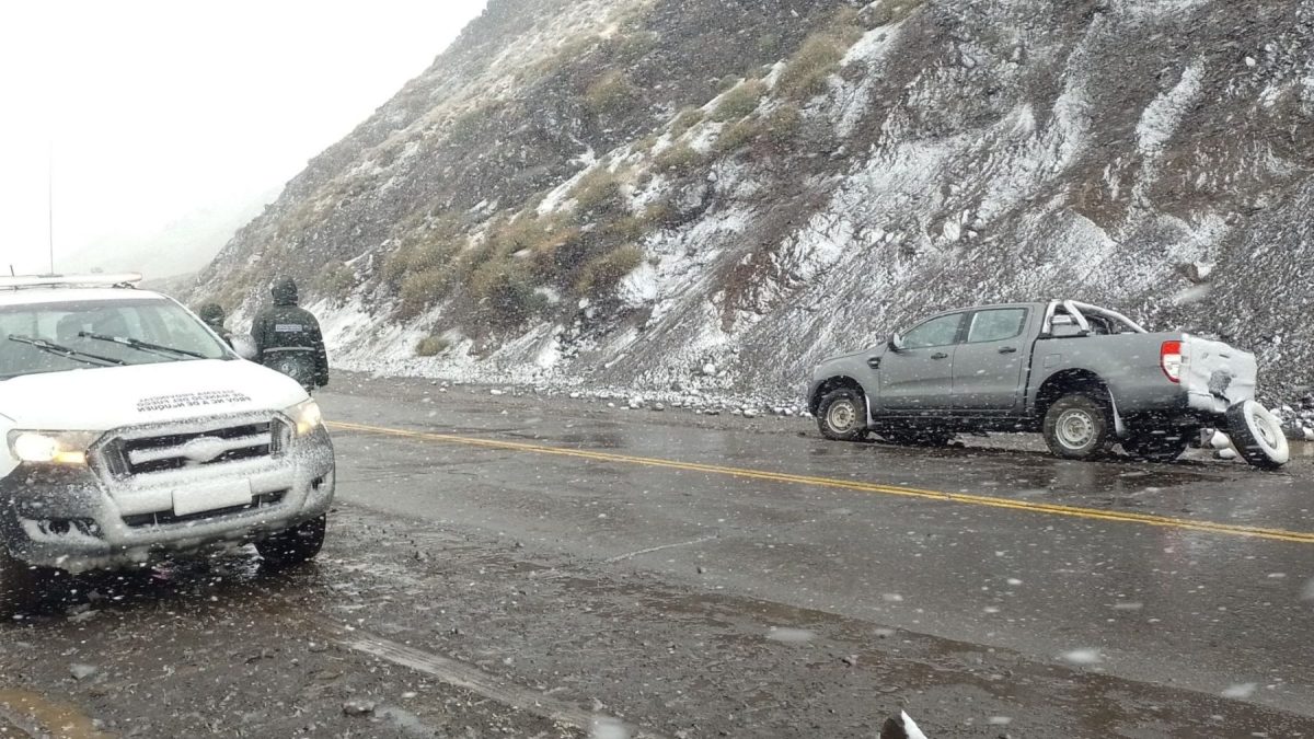 Según las imágenes compartidas, las piedras impactaron contra el lateral derecho del vehículo que transitaba por el lugar y dañaron uno de sus neumáticos. Justo al momento del accidente, se registraba una intensa nevada que complicaba el estado de la ruta, pero de igual manera los damnificados pudieron ser auxiliados.