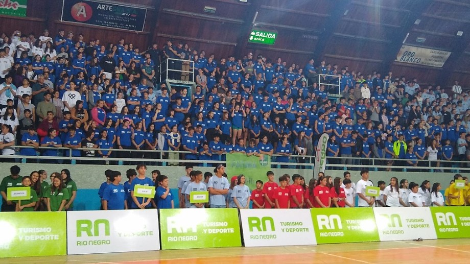 Con un gimnasio Pedro Estremador en Bariloche colmado de adolescentes, divididos por colores en seis zonas de la provincia, se dio celebró esta tarde la ceremonia inaugural de la instancia final de los Juegos de Río Negro 2022, en el que participan 2.000 estudiantes.