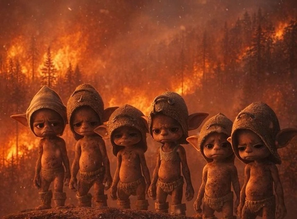 A través de una animación realizada con Inteligencia Artificial (IA), Fernando planteó una escena dolorosa: las entrañables criaturas de la ficción en la más cruda realidad actual. Los Peques, desesperados y entre lágrimas, presenciando desde adentro como su hogar arde en llamas, huyendo para sobrevivir.