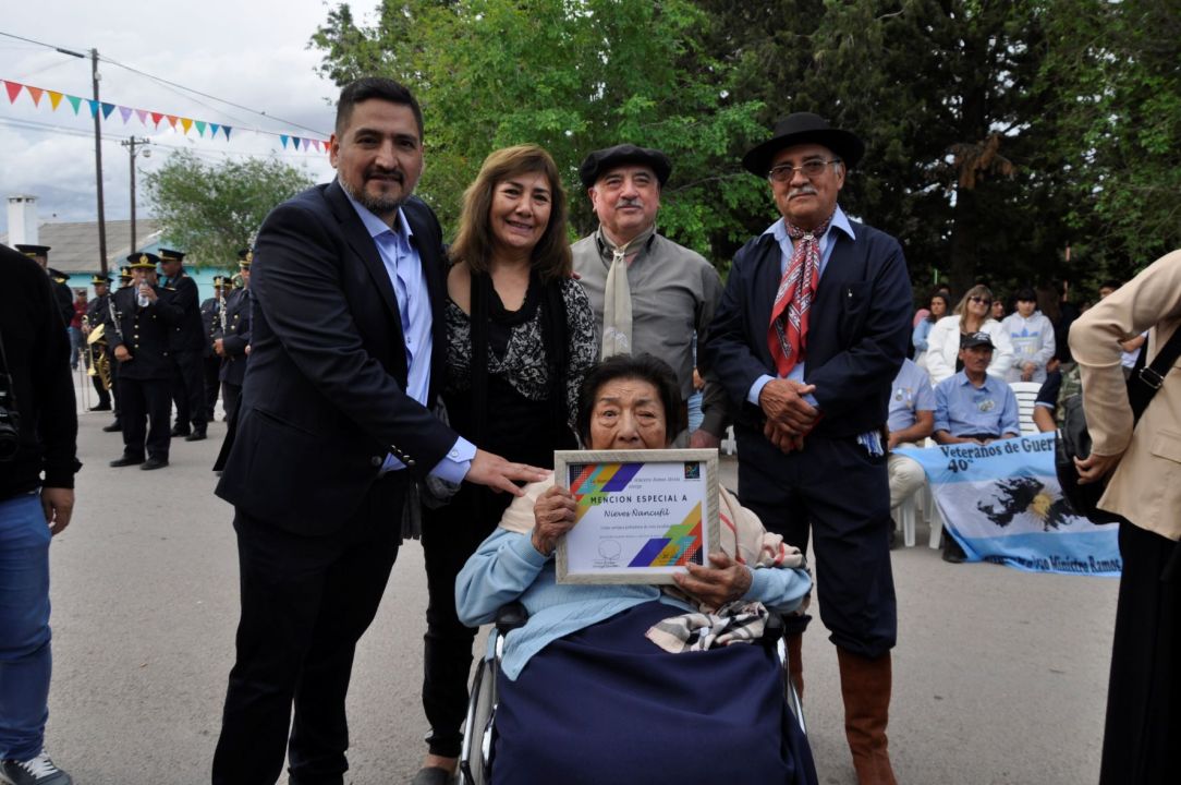 Pasadas las 19 horas, frente al edificio municipal y ante una multitud, fueron reconocimientos antiguos vecinos, referentes del deportiva y la cultura y ex combatientes de Malvinas. Allí el jefe comunal realizó un repaso de la gestión, enfocándose en el último año y agradeció el acompañamiento de los vecinos y del gobierno provincial.
