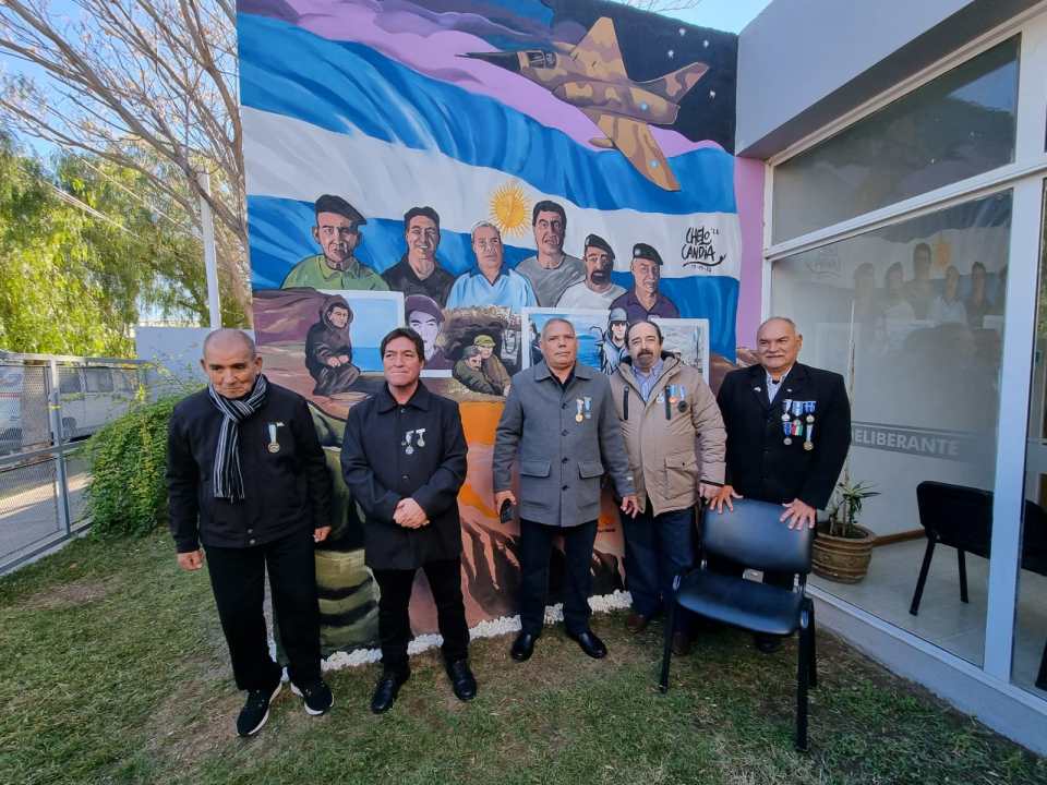 A las 11 el acto se trasladó al edificio del Legislativo local, donde se inauguró un mural realizado por el artista roquense Chelo Candia en homenaje a los veteranos y caídos en la Guerra de Malvinas. La intervención ya es visible desde hace algunos días en el ingreso del Deliberante, ubicado en calle Perito Moreno y Escales.