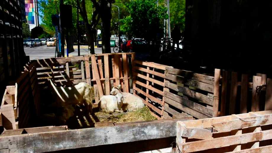 Esta mañana, retomó su demanda en Roca y La Rioja, acompañado de alguna de sus chivas, con un corral que improvisó frente a la gobernación.