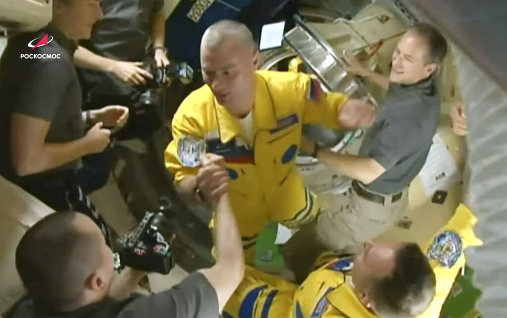 Un trío de cosmonautas rusos arribó este viernes a la Estación Espacial Internacional. Se trata de los primeros rostros nuevos en el espacio desde el comienzo de la invasión de Rusia a Ucrania, quienes arribaron vistiendo trajes con los colores de la bandera de Ucrania.