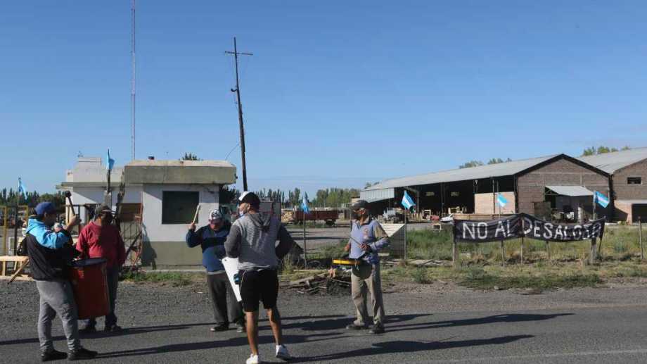 Los trabajadores resisten en la ruta chica el ultimátum para retirarse voluntariamente del predio donde trabajan. Esperan respuestas del gobierno provincial y sino amenazan con cortar la 22.