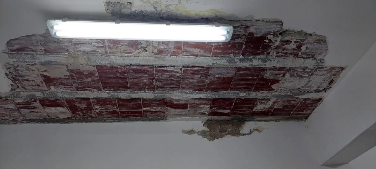 Tras el regreso a las aulas luego del receso invernal, se difundieron imágenes del estado en el que se encuentra la escuela N°218 ubicada en el barrio YPF. A partir de las lluvias registradas, el cielo raso del edificio se vio afectado y se desprendieron escombros, aseguraron que ya ha ocurrido anteriormente.