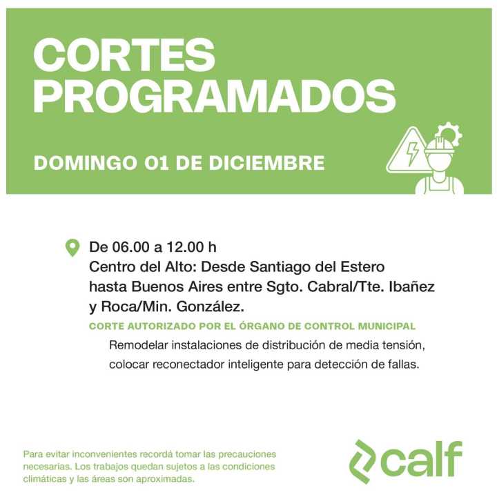 Calf tamién realizó cortes de luz programados esta semana en distintas zonas de Neuquén.