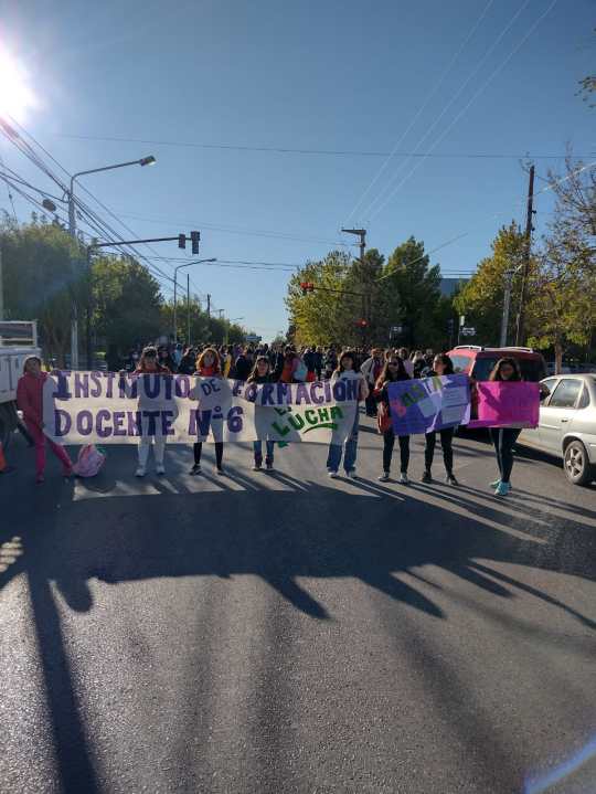 También en Neuquén capital, la comunidad del Instituto Superior de Formación Docente N°6 cortó la calle frente al establecimiento, en Amancay e Islas Malvinas. Reclaman mejoras edilicias.