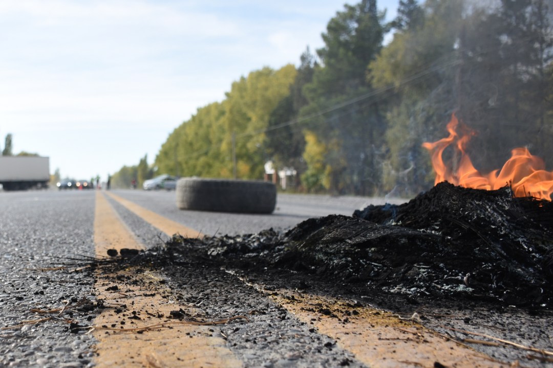 A media mañana, había presencia de militantes quienes con quema de gomas se apostaron en la calzada y permanecieron ahí hasta la tarde, señaló su referente regional Sabino López.