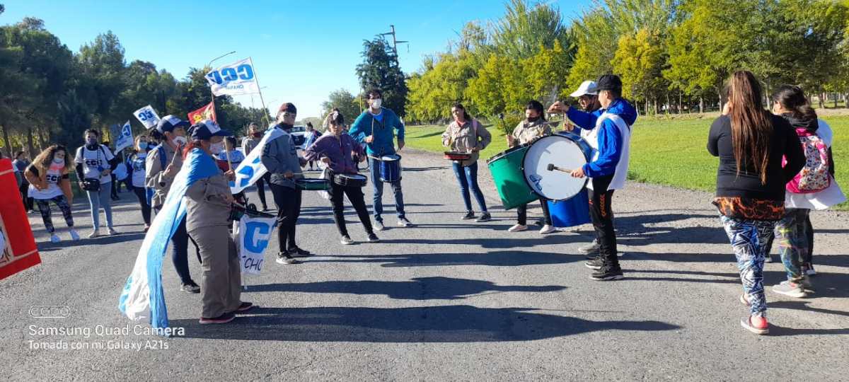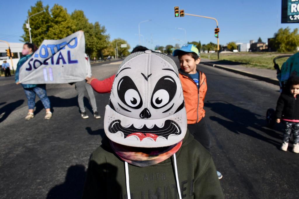 En Roca, una nutrida columna de manifestantes de distintas organizaciones sociales y sindicales marchó por calle San Juan desde la intersección con Tucumán hasta llegar a la Ruta 22, donde realizaron un corte de tránsito que se levantó a las 14.