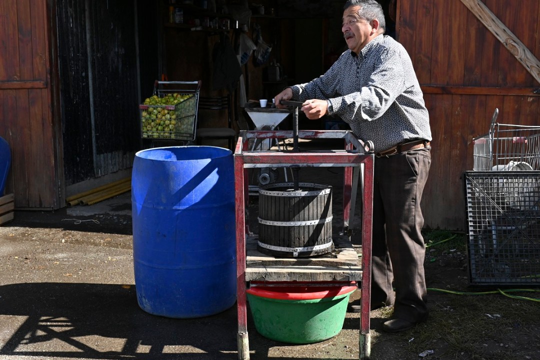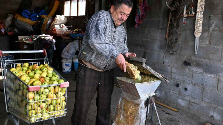 Alberto Calistro asegura que es el único en todo Bariloche que fabrica chicha, una bebida tradicional de la zona central de Chile que se obtiene de la fermentación de la manzana