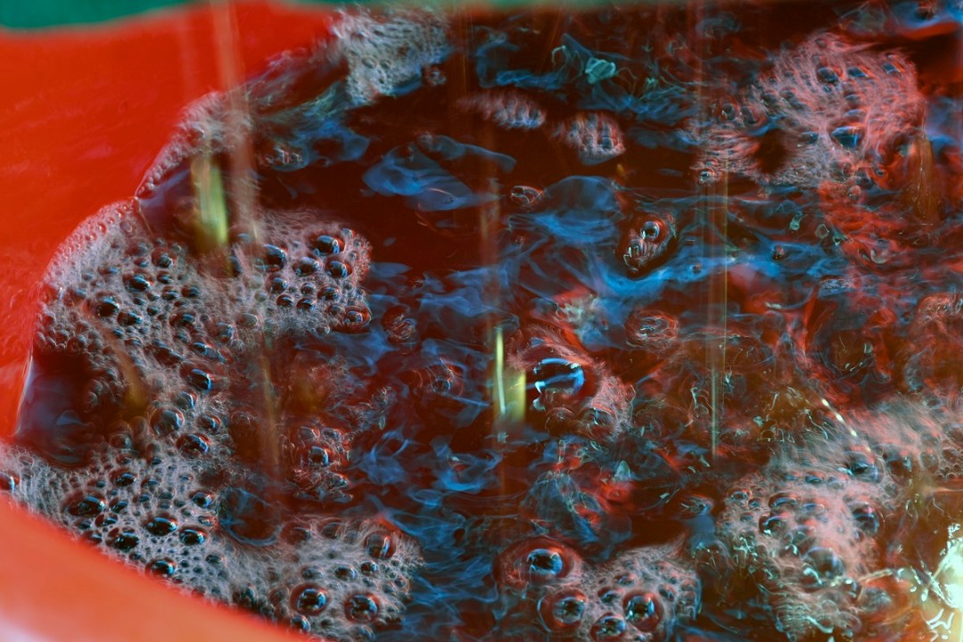 Cuando se le consulta sobre el proceso de elaboración, Calistro explica que el primer paso es lavar y desinfectar las manzanas. Prefiere dejarlas en un bidón con lavandina durante varias horas. Luego las ralla y, finalmente las prensa.