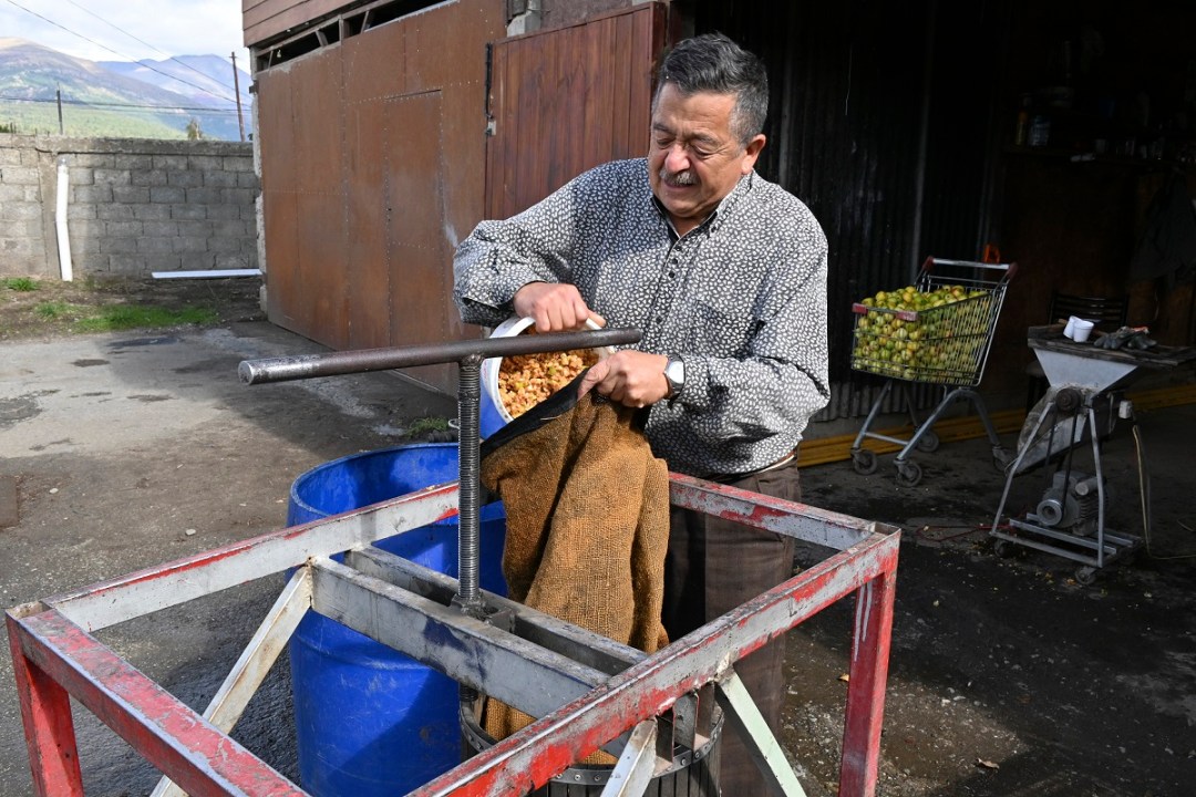 Cada temporada, de marzo a junio, sale a recorrer rincones muy puntuales en busca de la «manzana limón» (por su tamaño pequeño). El tiempo de cosecha se extiende hasta casi la llegada del invierno porque «si la manzana se congela no sirve«.