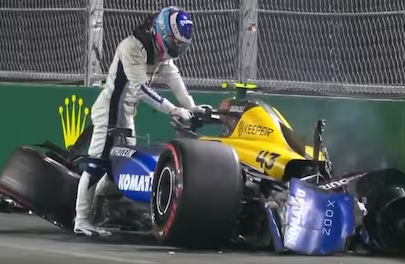 En su primera incursión en un trazado urbano, Colapinto tuvo un fuerte golpe contra el muro a falta de 19 minutos del final de la primera tanda de entrenamientos de Bakú. En Estados Unidos, Colapinto padeció un impacto contra un paredón en su intento desesperado por ingresar a la Q3 y su Williams quedó destrozado. Fue en Las Vegas y de noche.