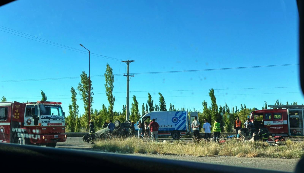 Un vuelco hubo este domingo sobre la Ruta 22, cerca de Villa Regina. Iban cuatro ocupantes en el vehículo. Fueron trasladados al hospital local, con heridas de diferente gravedad.