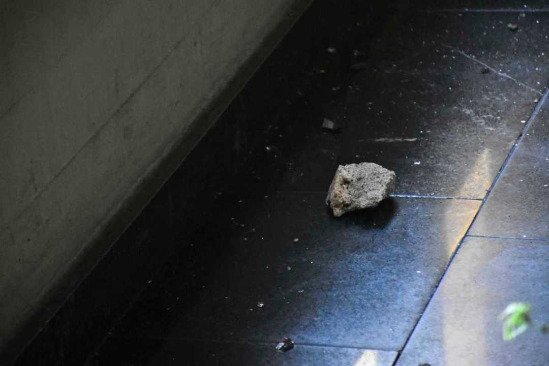 A raíz de las heridas, la uniformada fue resguardada dentro del edificio mientras continuaban los ataques de piedras.