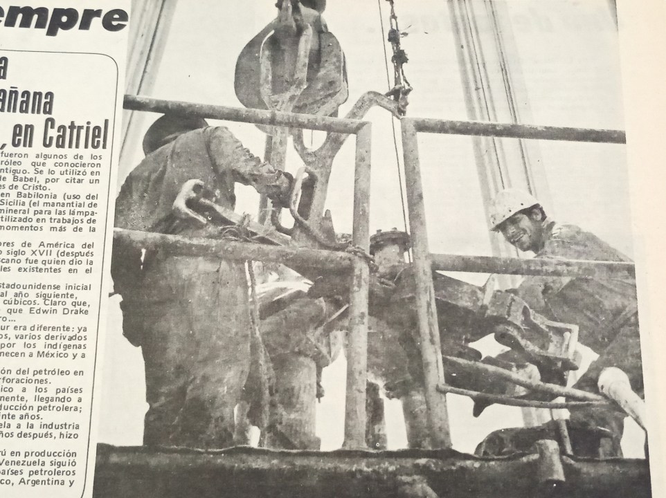 En un contexto en el que todo estaba por hacerse, no había alojamiento fijo ni menú diario, desafíos que resolvían con ingenio, hasta que llegara el descanso cada 18 días. Siempre mojado, con barro hasta la rodilla, era normal para él enfrentar el frío de las madrugadas y ese sábado histórico su labor había comenzado a las 4 de la mañana, porque se hacía ensayo. A eso de las 6 “sacaron como cuatro kilos de petróleo”, recordó y el cronista lo ‘mecanografió’ textual.