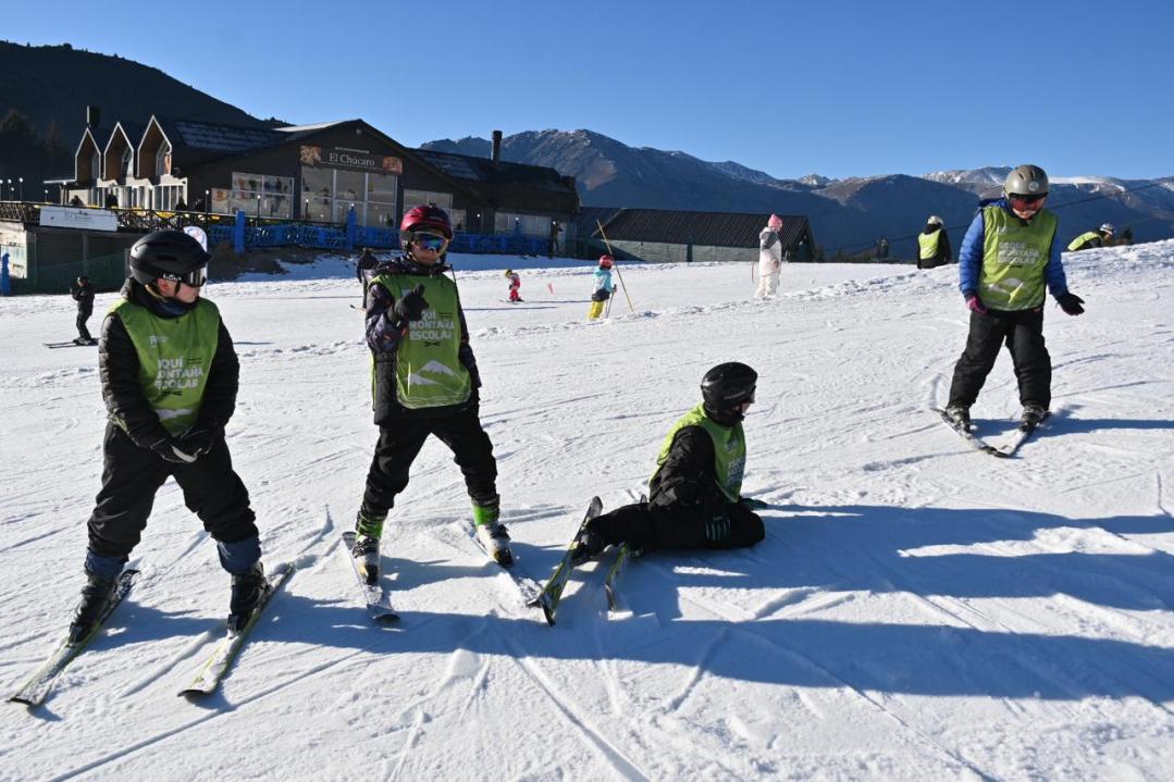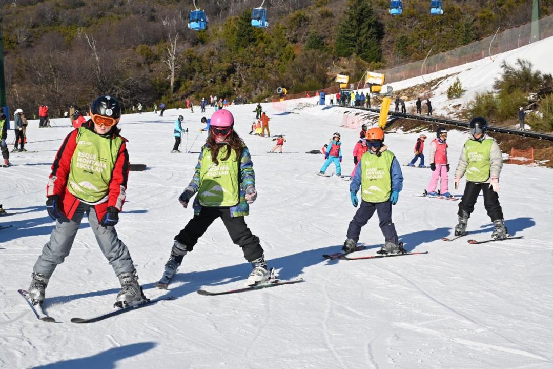 El programa comenzó este lunes y se extenderá a lo largo de ocho semanas. Unos 200 estudiantes por semana concurren al cerro, junto a cuatro coordinadores y 25 instructores de esquí.