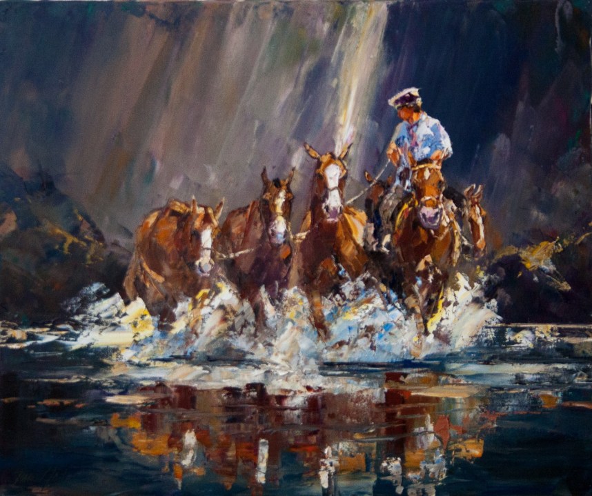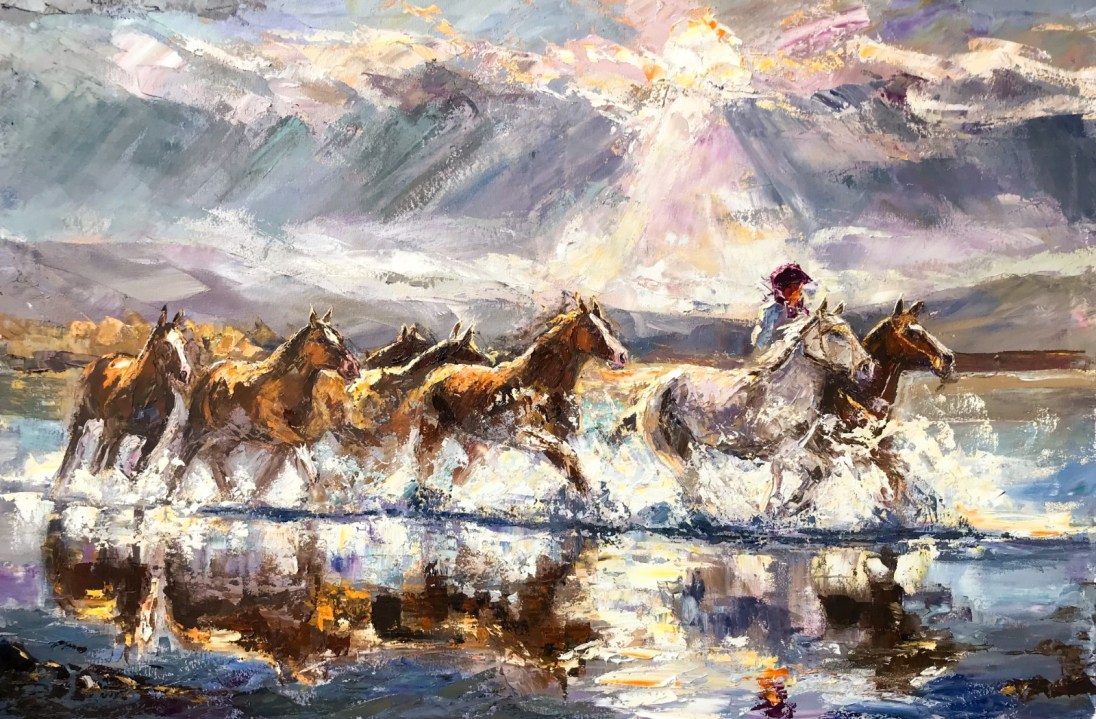 Darío se abocó a la pintura impresionista: pinta al aire libre y representa la Patagonia. Dibuja caballos, montañas, a sus hijos, el entorno donde vive y reconoció, es liberador. «Trabajo con espátulas sobre óleos. Me enfoco en el manejo de la luz. Busco una visión más poética», sintetiza. Recuerda que cuando en Buenos Aires, dibujaba un árbol, por ejemplo, pintaba sus raíces enroscadas, oscuras. «Era una pintura tétrica porque uno pinta lo que vive. Eso psicológicamente se nota. En San Martín todo era más etéreo, con otros colores. Tu estado de ánimo se refleja en la tela«.