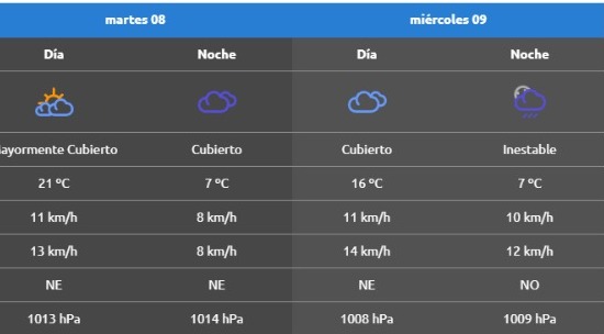 El miércoles, la situación no presentaría cambios significativos. El viento dirá nuevamente presente, esta vez con ráfagas de hasta 56 km/h, la nubosidad irá en aumento con cielo mayormente cubierto y la temperatura, luego de una mínima de 14°C en la mañana, ascenderá otra vez hasta los 24°C.