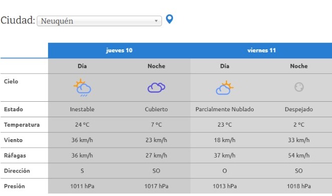 En Neuquén y el Alto Valle, informó la Autoridad Interjurisdiccional de Cuencas (AIC), las ráfagas se notarán desde temprano este martes, con velocidades que oscilarán entre los 40 km/h y los 50 km/h. La temperatura, por su parte, variará entre los 12°C y los 24°C, con cielo mayormente despejado.