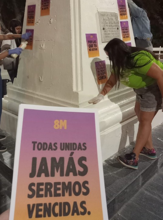 Desde la Campaña por la Emergencia Allen cuestionaron: «¿Incómoda el cartel pegado a los pies del prócer o incomodamos las mujeres combativas?»