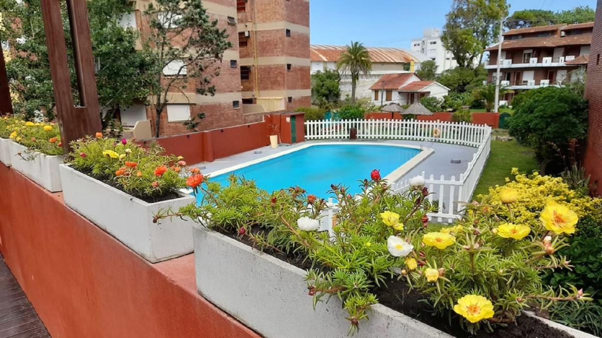 El hotel contaba con una piscina y mas de 600 metros de espacio verde, para el disfrute de sus huéspedes, además de un sector de buffet en el que servían el desayuno.