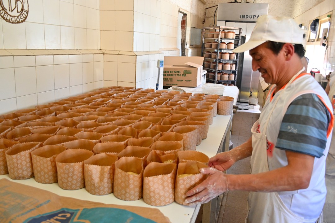 La mañana recién arranca, pero Nicolás no deja de dar indicaciones. Asegura orgulloso que, con las donaciones de este año, llevan fabricando alrededor de 400 panes por día. También aclara que su pan dulce «no es industrial, sino totalmente casero»: «No tiene aditivos, ni conservantes ni colorantes. Es un pan para consumir hasta fin de año. Usamos caña como el único aditivo conservante».