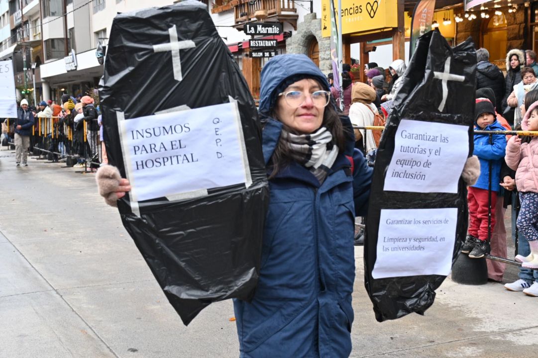 También frente al palco hubo algún espacio para las protestas, como la que expresaron estudiantes de la UNCo. Los trabajadores hospitalarios también manifestaron su disconformidad con la actual situación del sistema de salud en la ciudad.