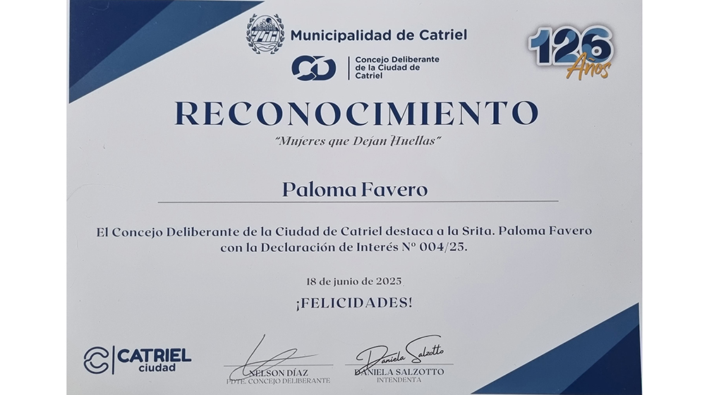 «Catriel es la localidad donde nací, crecí y me formé. Es una ciudad con educación pública en todos sus niveles educativos, aunque no dispone de sedes universitarias, por lo que para continuar estudiando una carrera hay que migrar», cuenta María Paloma Favero. Ella fue una de las afortunadas en poder hacerlo.