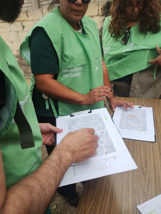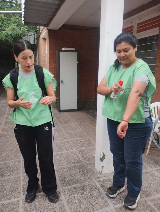 Las tareas incluyeron recorridas casa por casa. “Informamos a la población y, cuando fue posible, identificamos y eliminamos criaderos de mosquitos”, detalló la especialista.