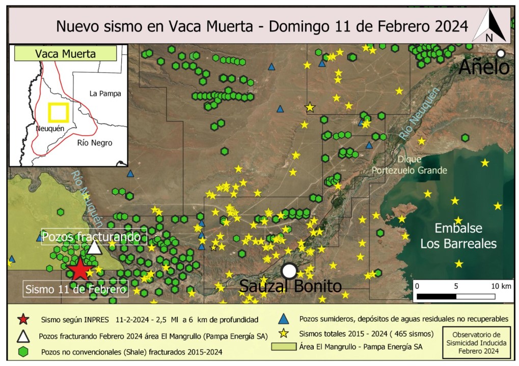 Este domingo por la madrugada se registró un nuevo sismo en Vaca Muerta, más precisamente a pocos de la localidad neuquina de Sauzal Bonito. Según el Instituto Nacional de Prevención Sísmica (INPRES), tuvo una magnitud de 2,5 grados en la escala de Richter.