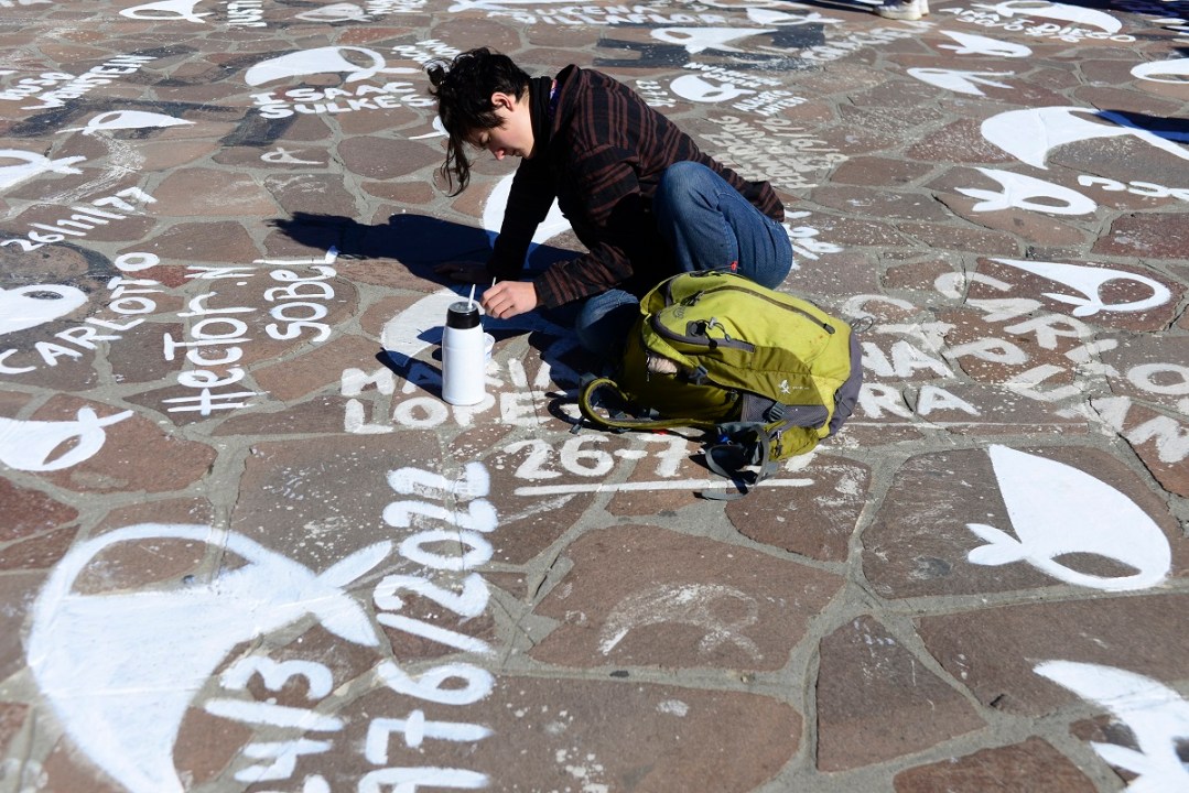 Muchos estudiantes, trabajadores estatales, militantes de derechos humanos y de organizaciones barriales participaron de la actividad. La mayoría se dedicó a recuperar a nuevo el blanco de los pañuelos, nombres y fechas que recuerdan sobre las lajas moradas a los desaparecidos de la región y de todo el país, y que lucían gastados por el tiempo que transcurrió desde la última pintada.