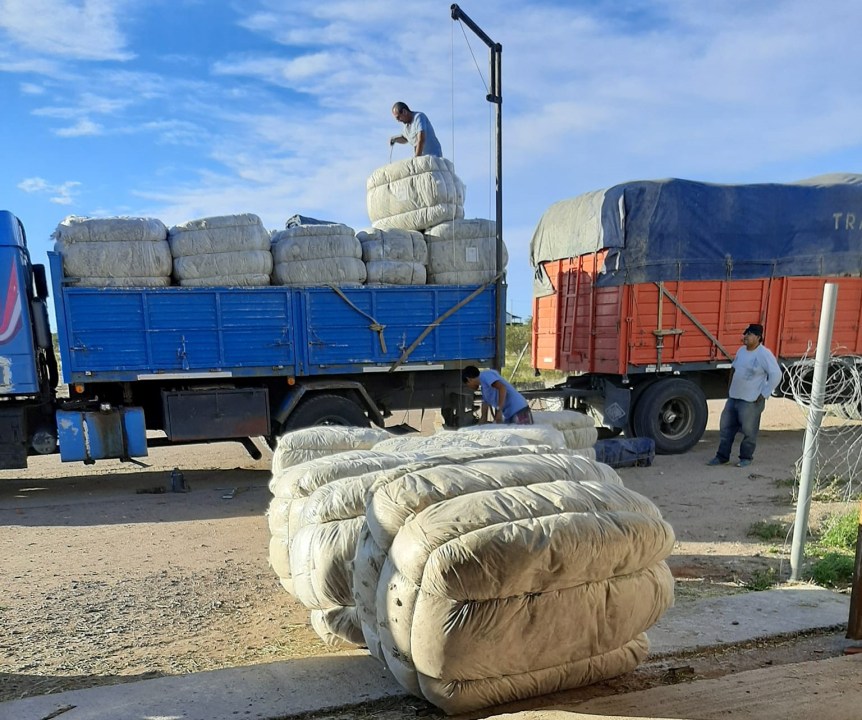 En el galpón, acopian, clasifican y enfardan la lana y el mohair de los asociados para luego comercializarla. Son unos 46.000 kilos de lana y unos 8.000 de mohair.