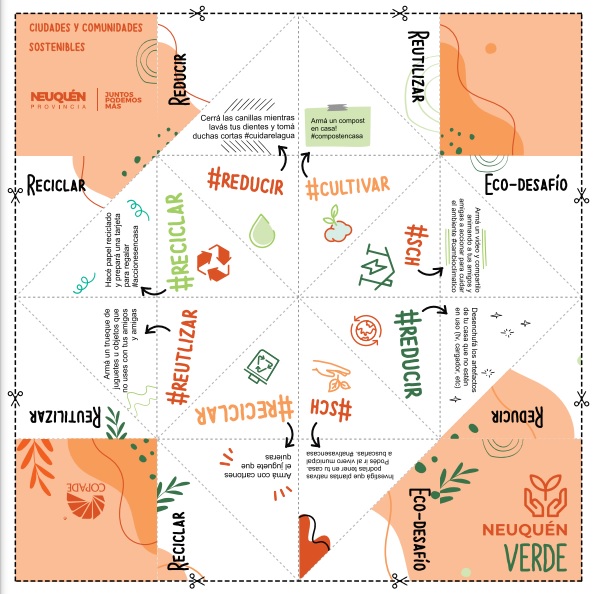 Esta guía práctica es acompañada de un juego para los chicos/as: un comecocos para armar que hace énfasis en las 3 R que son reutilizar, reciclar y reducir. Además tiene dos ecodesafíos a resolver.