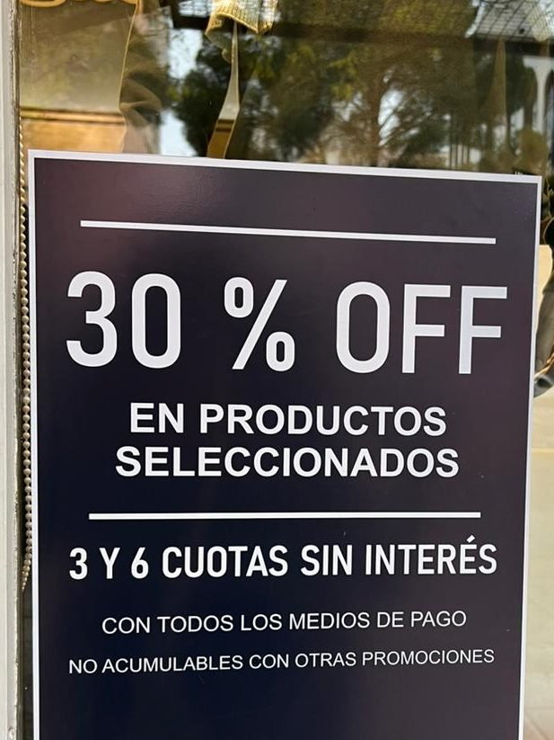 En un comercio de indumentaria ubicado sobre Buenos Aires, hay suéters y remeras por $30.000 si se abona en efectivo o transferencia. En compras superiores a $70.000 se puede abonar en tres cuotas sin interés con tarjetas de cualquier banco.