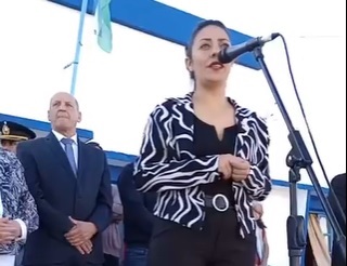 Direne, estuvo acompañada en el palco por el vice intendente de Valcheta, Juan Pablo Montelpare, la legisladora Nayibe Gattoni, concejales locales, la intendente de Los Menucos, Mabel Yahuar, el intendente de Jacobacci, Carlos Toro, y el legislador Juan Martín.