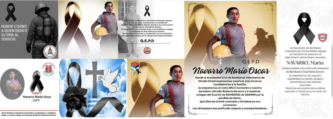Además del cuartel de Darwin, las asociaciones de bomberos voluntarios de Catriel, Choele Choel, Chimpay, General Roca, Coronel Belisle, El Bolsón y la Academia de Bomberos de Río Negro mostraron sus condolencias por la muerte de Navarro.