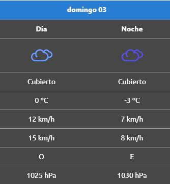 Por la noche, el cielo seguirá cubierto, aunque sin probabilidades de precipitaciones, y la mínima será de -1°C. Mientras tanto, el viento bajará su intensidad.
